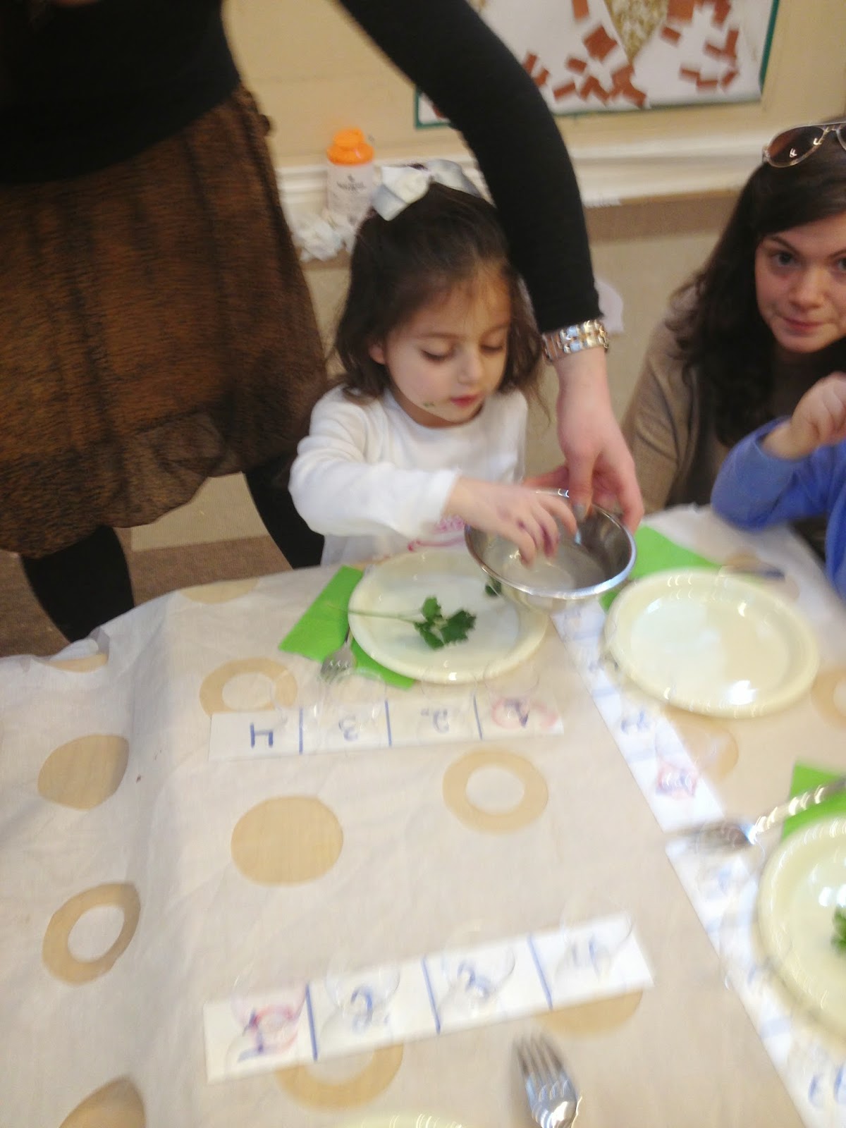Decorating the seder plates: